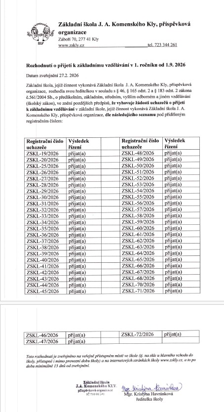J. A. KOMENSKÉHO KLY, příspěvková organizace